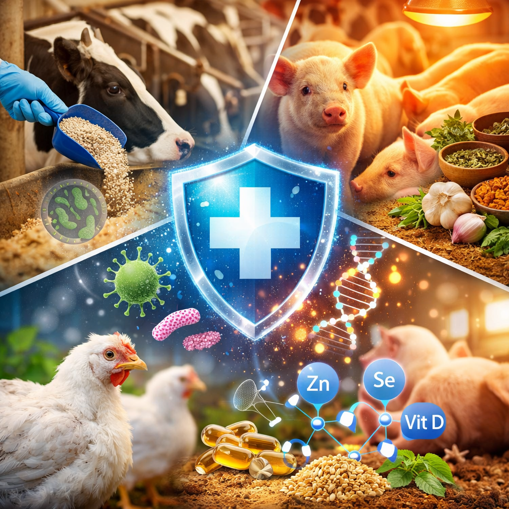 En los últimos años, la producción animal ha enfrentado grandes retos: restricciones en el uso de antibióticos, crecientes demandas de bienestar animal, y la necesidad de sistemas más sostenibles. En este contexto, la nutrición y la suplementación funcional han pasado de ser un complemento a convertirse en una pieza clave para fortalecer el sistema inmune de vacas, cerdos y aves, mejorando así su salud y productividad.